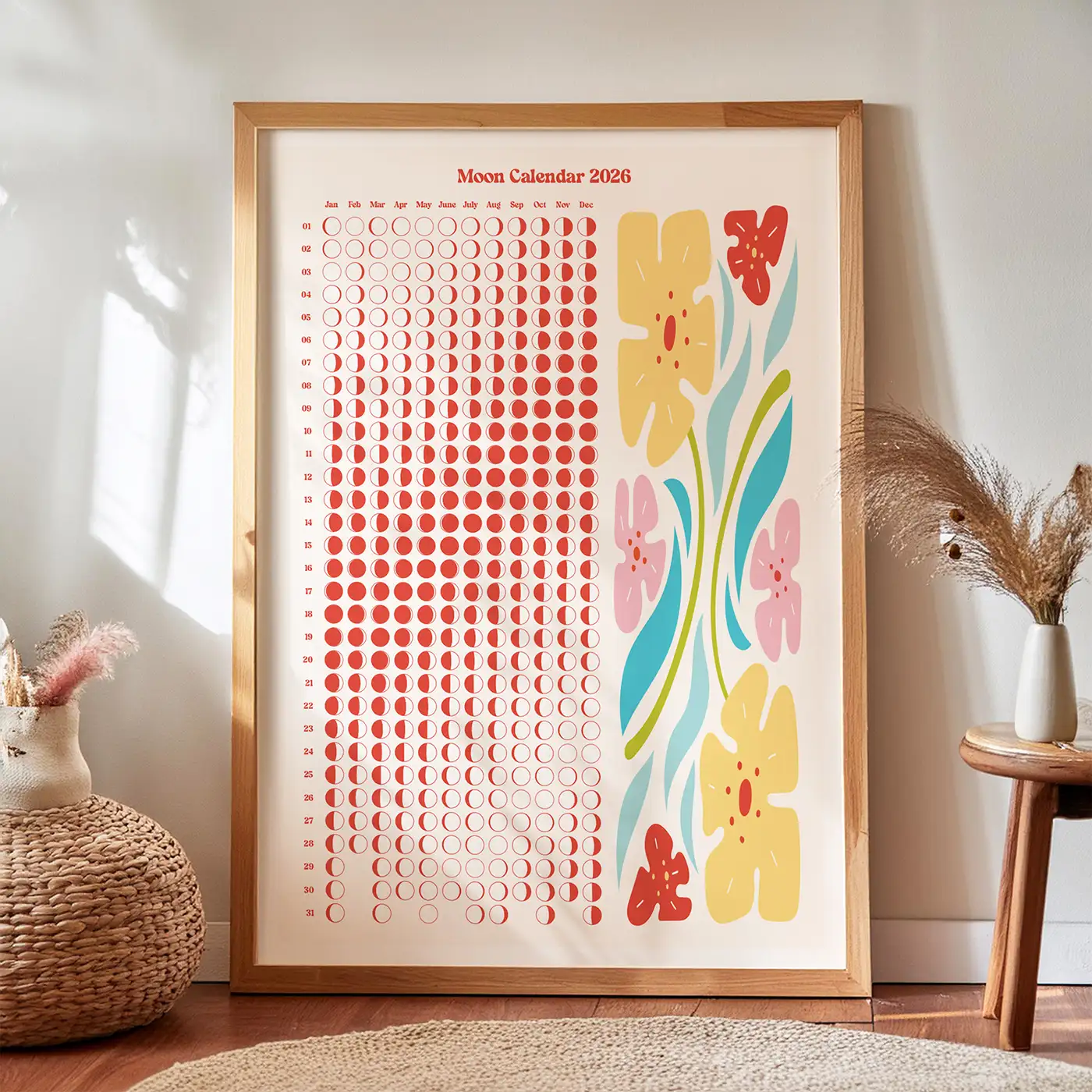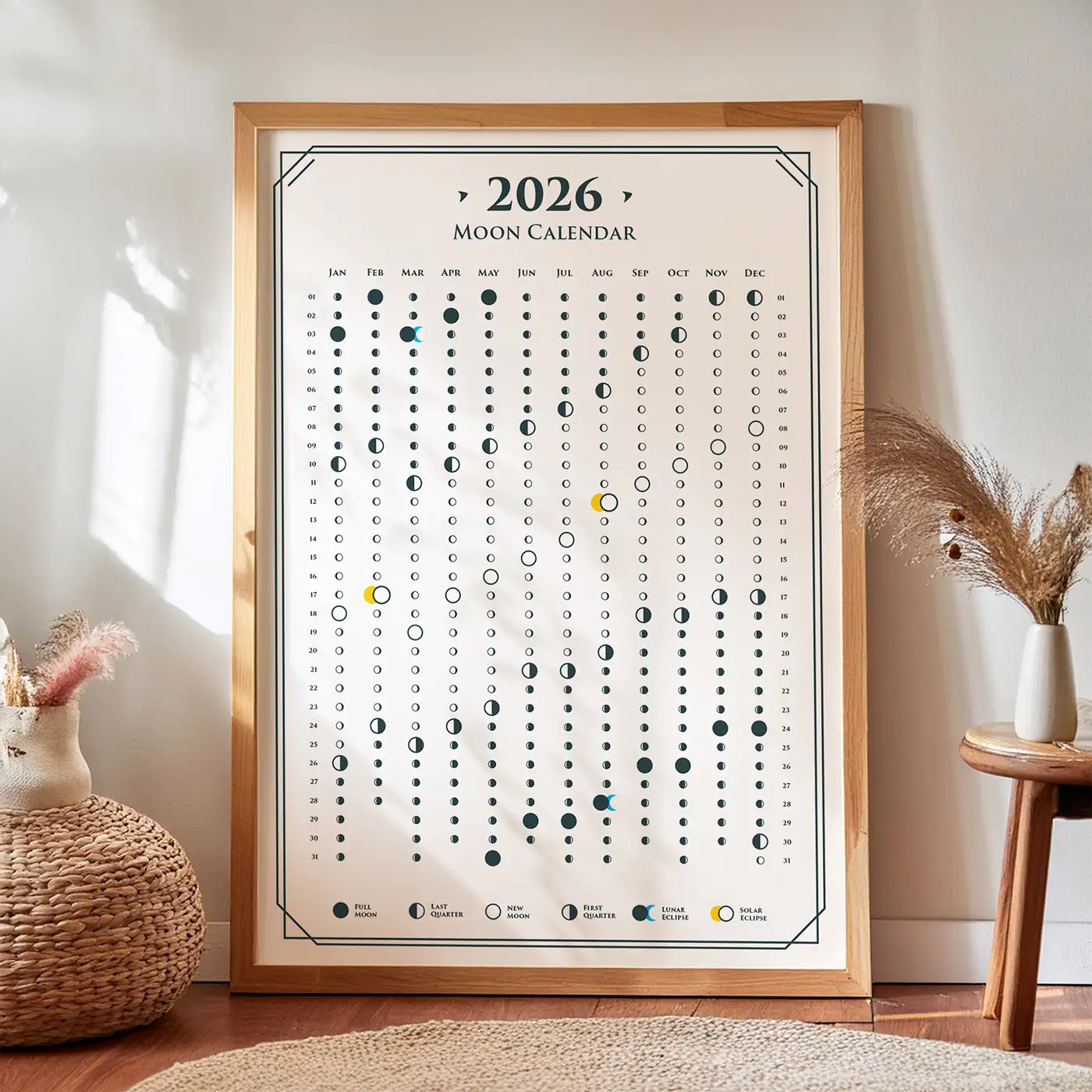 2026 Lunar Calendar with Phases of Moon for Living Room