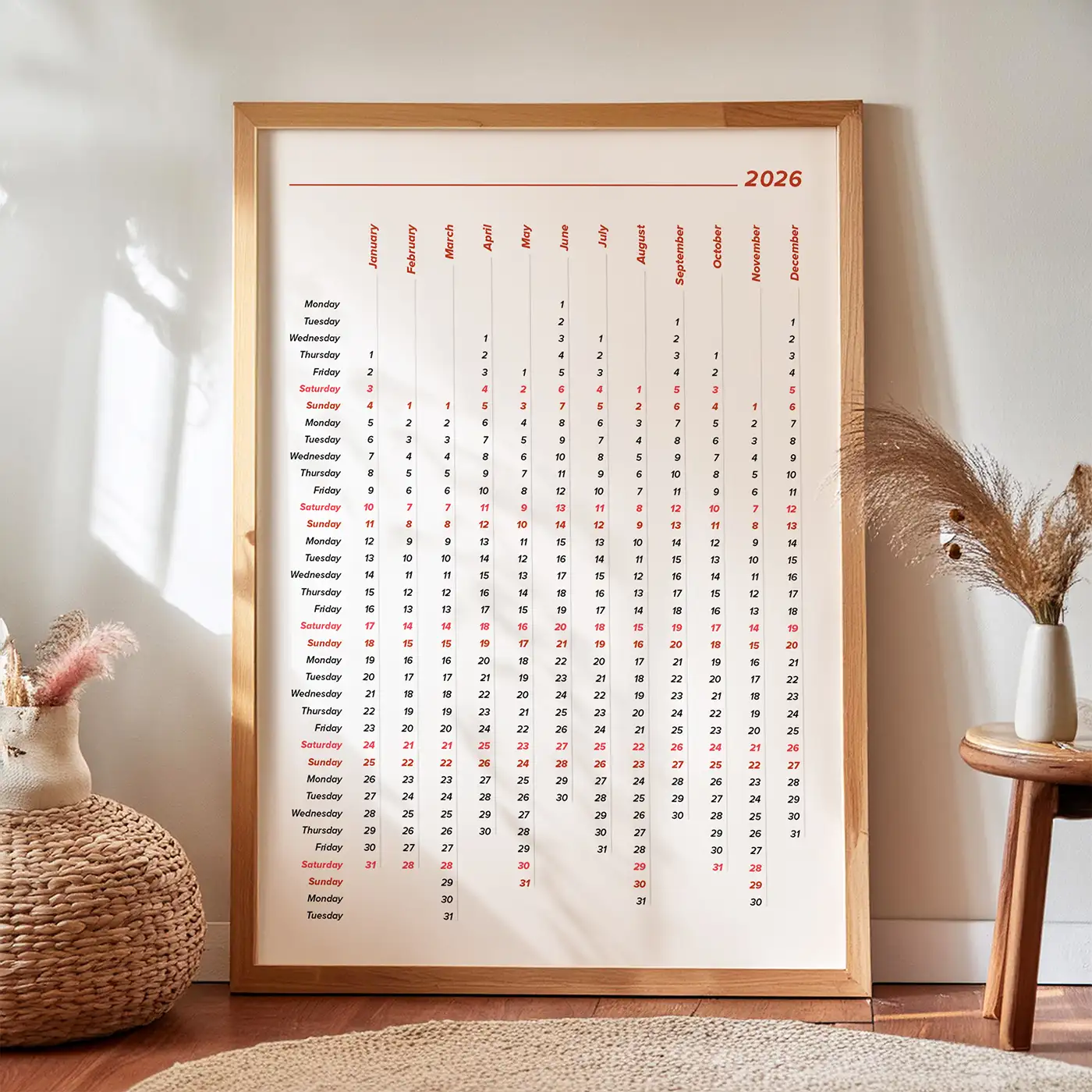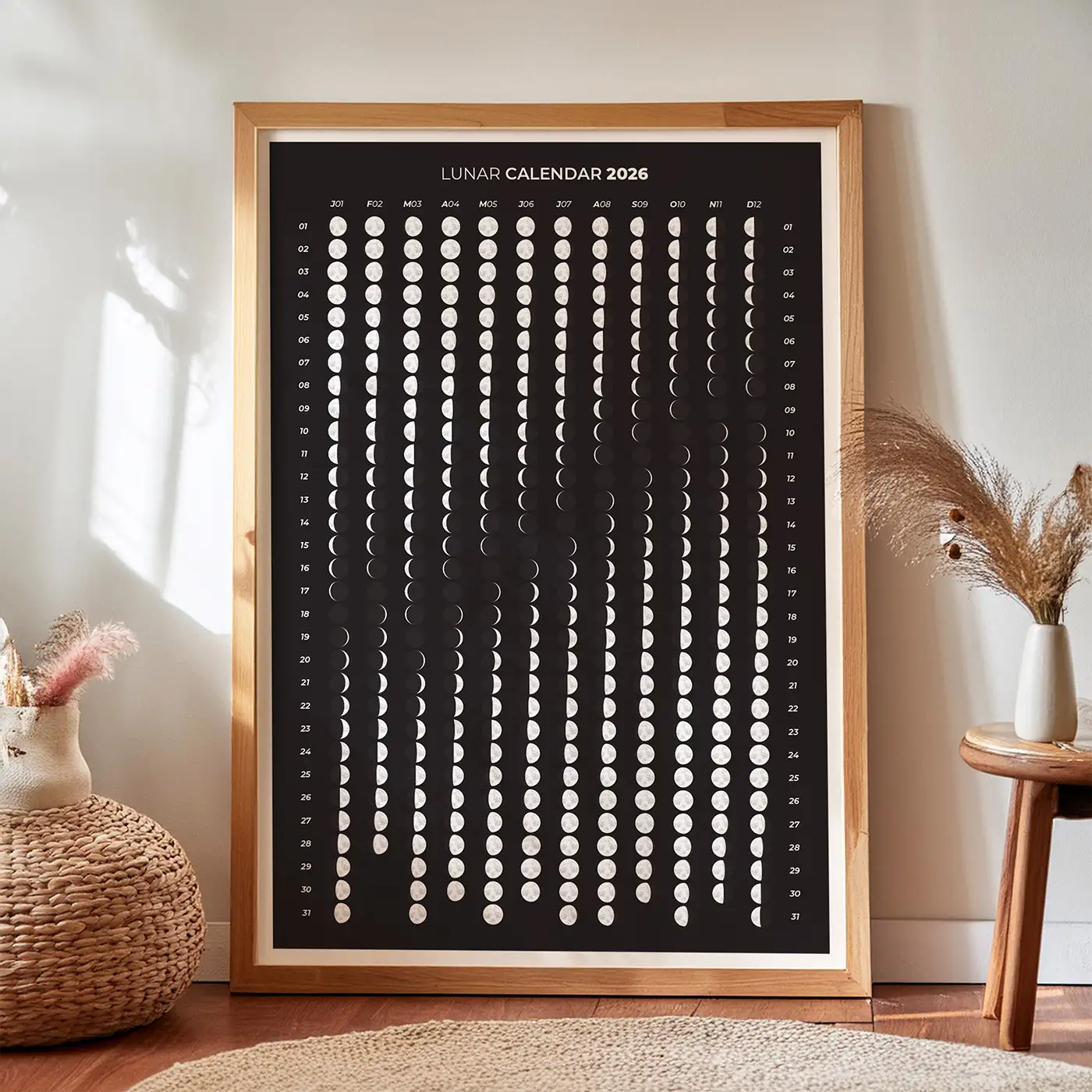 2026 Moon Calendar: Vertical Lunar Phases Wall Art