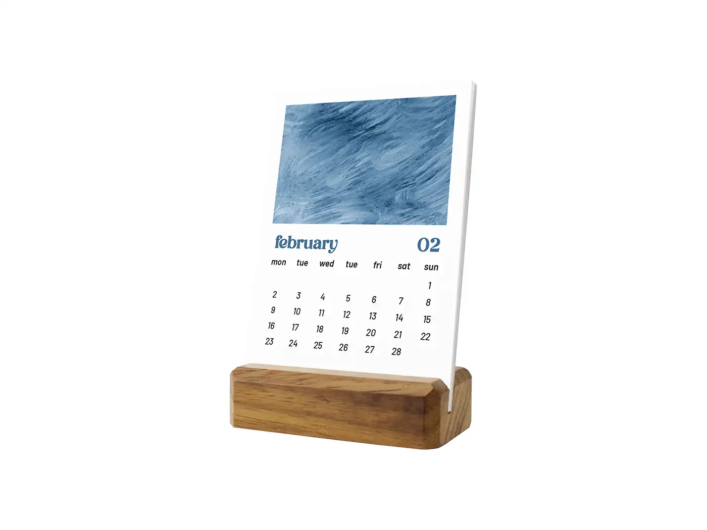 2026 Desk Calendar - Wooden Stand Calendar with Abstract Oil Painting Texture