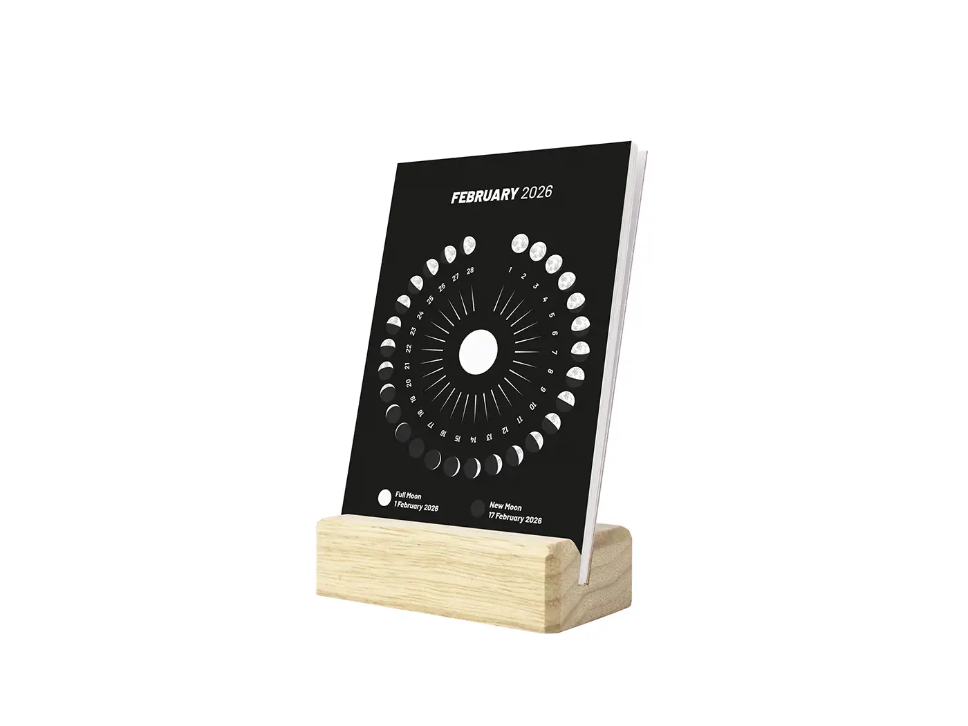 2026 Desk Calendar with Phases of Moon, Black
