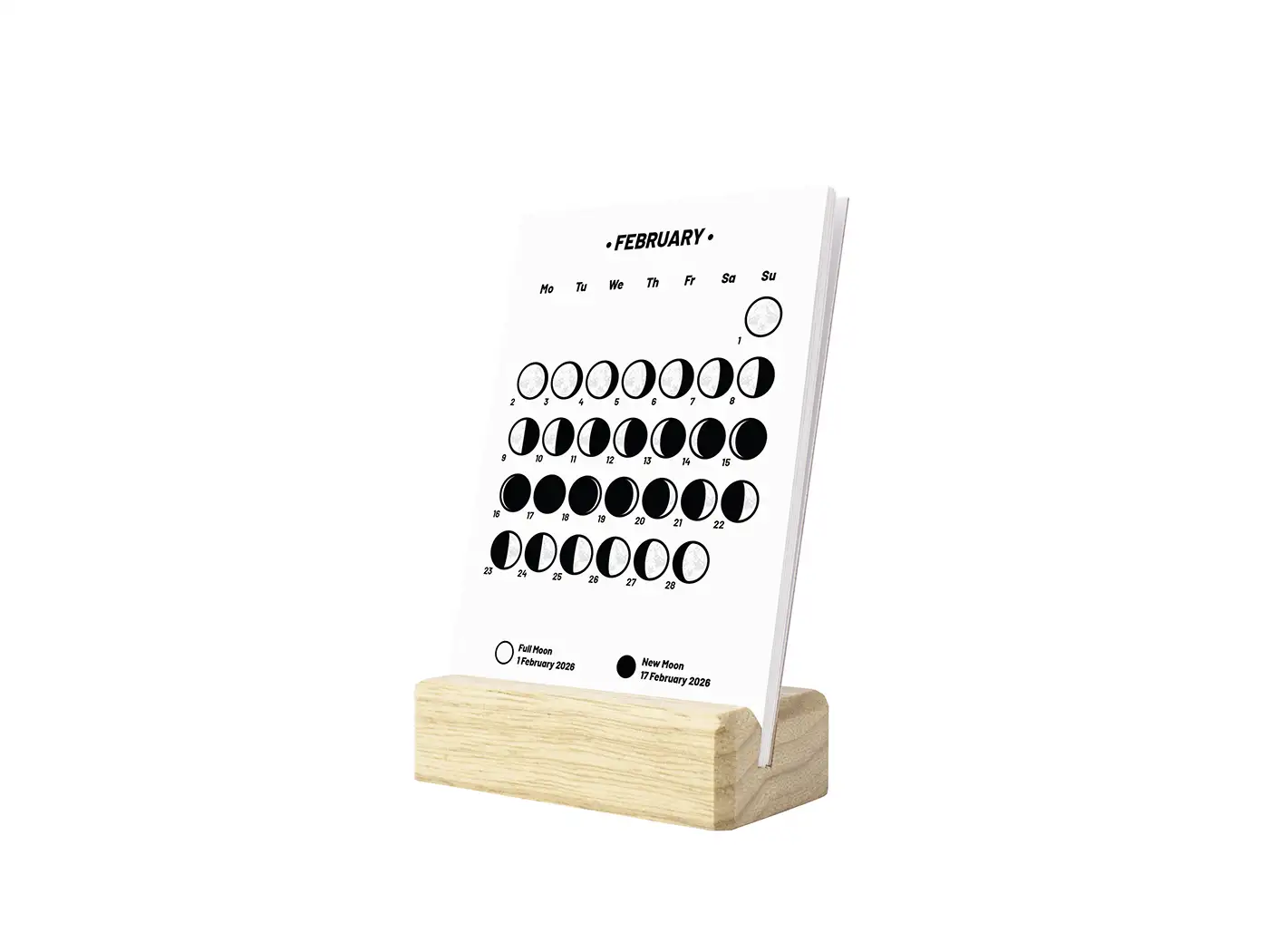 2026 Small Desk Calendar with Lunar Phases